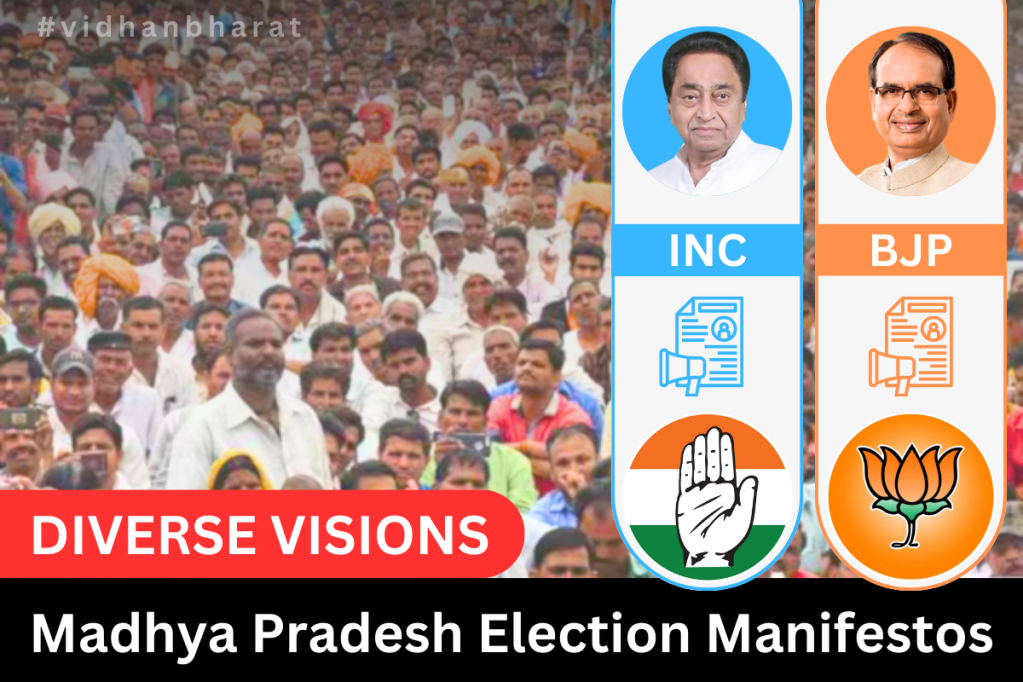 Currently, the state is governed by the Bharatiya Janata Party. As the election draws near, it becomes crucial to explore the manifestos of different political parties to grasp their vision and commitments for shaping the future of the state. The tenure of the Madhya Pradesh Legislative Assembly will conclude in January 2024. The electoral contest primarily features the BJP and Congress.