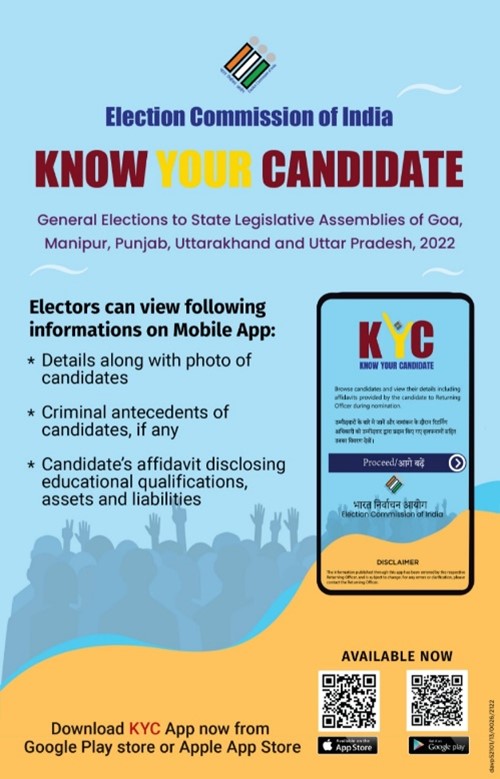 Know Your Candidate (KYC): The Election Commission of India (ECI) has created a specialized app, Know Your Candidate (KYC), accessible on Android and iOS devices. It provides information on candidates’ “Criminal Antecedents” status, enabling citizens to review candidates’ backgrounds. This empowers voters with crucial insights into candidates’ criminal records.